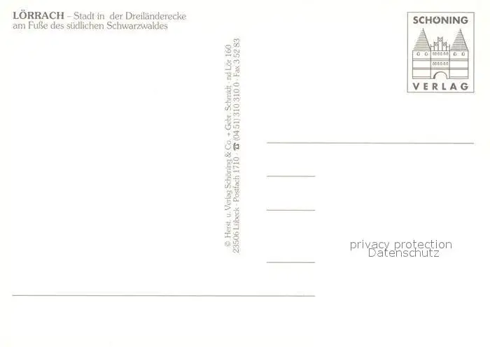 Loerrach Marktplatz Kirche Burg Roetteln Loerrach postalisch nicht gelaufen nach 1965 Erhaltung siehe scans [NatalD47] NataID47