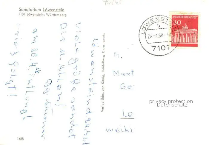 Loewenstein Panorama Kirche Sanatorium Rathaus Loewenstein postalisch gelaufen 1968 Erhaltung siehe scans [WerneD78] WernPID7