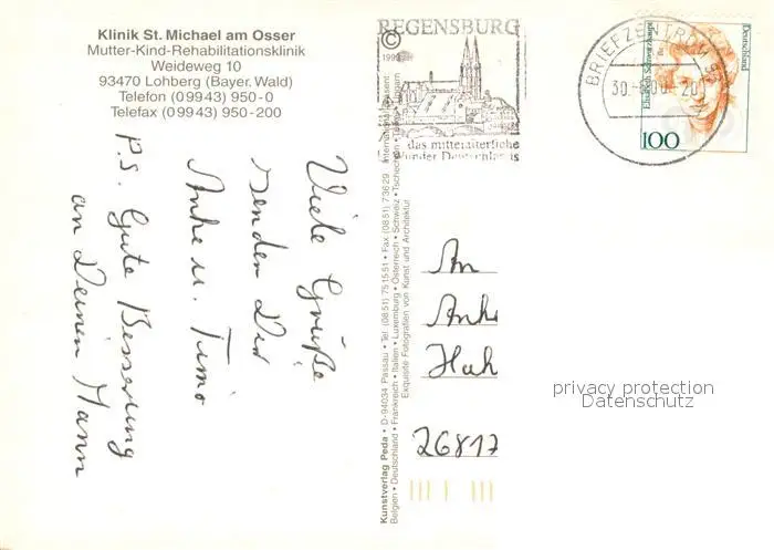 Lohberg_Lam Klinik St Michael am Osser Hallenbad Terrasse Gaststube Zimmer Lohberg_Lam postalisch gelaufen 2000 Erhaltung siehe scans [WerneD78] WernPID7