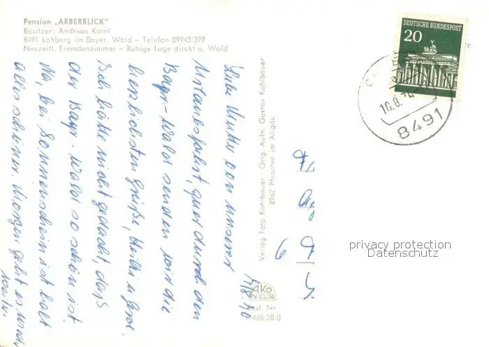Lohberg_Lam Pension Restaurant Arberblick Gaststube Panorama Lohberg_Lam postalisch gelaufen 1971 Erhaltung siehe scans [WerneD78] WernPID7