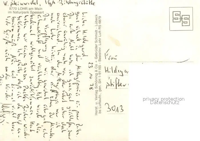 Lohr_Main Naturpark Spessart Fliegeraufnahme Lohr_Main postalisch gelaufen 1978 Erhaltung siehe scans [FriedD77] Frierer