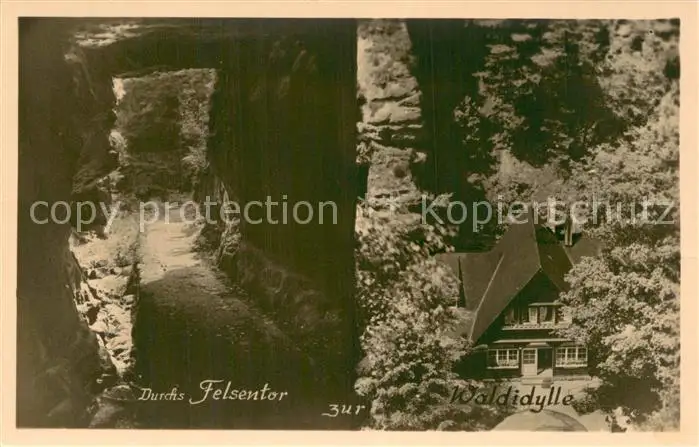 Lohsdorf_Hohnstein_Saechsische_Schweiz Durchs Felsentor zur Waldidylle postalisch nicht gelaufen 1921-1965 Erhaltung siehe scans [FriedD77] Frierer