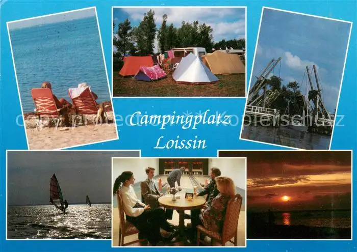 AK / Ansichtskarte Loissin_Pommern Campingplatz Loissin Ziehbruecke Strand Kegelbahn Surfer Loissin Pommern