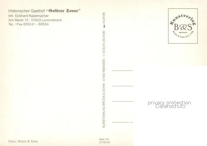 Lommatzsch Kategorie Alte Ansichtskarten Postkarten bx49949 Lommatzsch Historischer Gasthof Goldene Sonne Ortsansicht mit Kirche Postmeilensaeule Lommatzsch postalisch nicht gelaufen nach 1965 Erhaltung siehe scans [FriedD77]