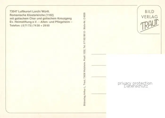 Lorch_Wuerttemberg Romanische Klosterkirche Lorch Wuerttemberg postalisch nicht gelaufen nach 1965 Erhaltung siehe scans [WerneD78] WernPID7