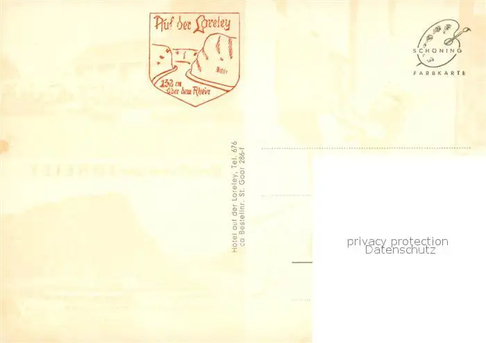 Loreley_Lorelei Felsen Dampfer Restaurant Terrasse Maedchen am Briefkasten Loreley_Lorelei postalisch nicht gelaufen nach 1965 Erhaltung siehe scans [FriedD77] Frierer