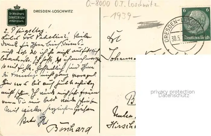 Loschwitz Dr. Weidners Sanatorium Bibliothek Loschwitz postalisch gelaufen 1939 Erhaltung siehe scans [LiesaD40] LiesID40