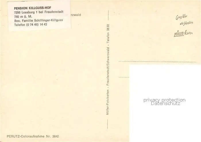 Lossburg Kategorie Alte Ansichtskarten Postkarten bx90796 Lossburg Pension Killguss Hof Lossburg postalisch nicht gelaufen nach 1965 Erhaltung siehe scans [WerneD78]