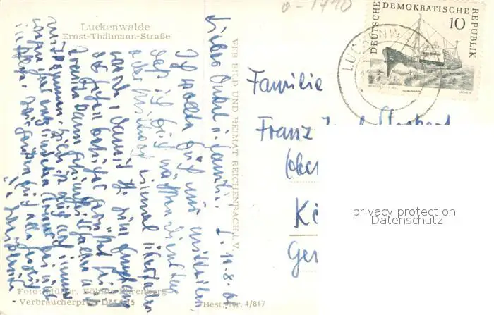 Luckenwalde Ernst Thaelmann Strasse Luckenwalde postalisch gelaufen 1961 Erhaltung siehe scans [FriedD77] Frierer