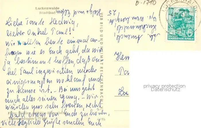 Luckenwalde Stadtbad Luckenwalde postalisch gelaufen 1961 Erhaltung siehe scans [FriedD77] Frierer