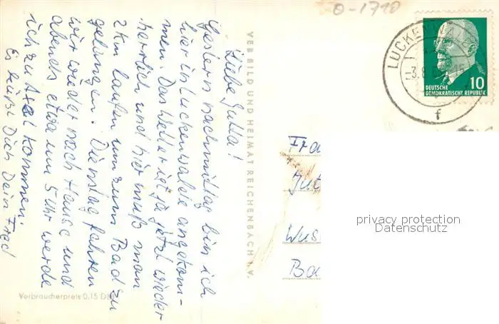 Luckenwalde Stadttheater Stadtbad Ernst Thaelmann Schule Gerhart Hauptmann Schule Wappen Luckenwalde postalisch gelaufen 1963 Erhaltung siehe scans [FriedD77] Frierer