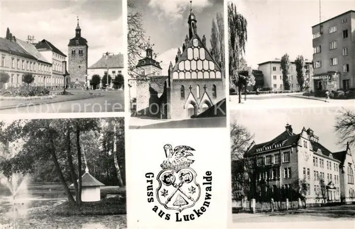 AK / Ansichtskarte Luckenwalde Stadtturm Rathaus Stadtpark Schwanenteich Gebaeude Innenstadt Wappen Luckenwalde