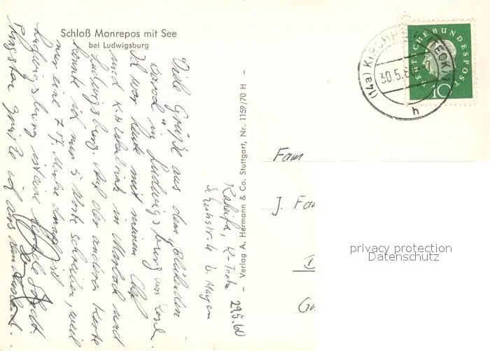 Ludwigsburg_Wuerttemberg Schloss Monrepos mit See Ludwigsburg Wuerttemberg postalisch gelaufen 1960 Erhaltung siehe scans [LiesaD40] LiesID40