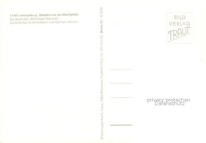 Ludwigsburg_Wuerttemberg Stadtkirche am Marktplatz Ludwigsburg Wuerttemberg postalisch nicht gelaufen nach 1965 Erhaltung siehe scans [KathaD81] Kathoren