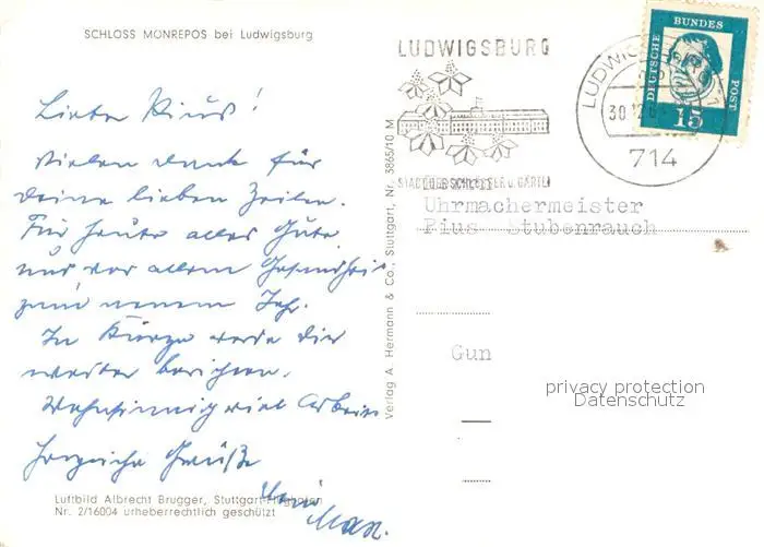 Ludwigsburg__Wuerttemberg Schloss Monrepos Fliegeraufnahme postalisch gelaufen 1965 Erhaltung siehe scans [WerneD78] WernPID7