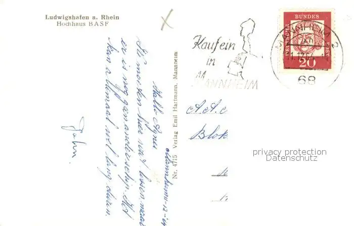 Ludwigshafen_Rhein Hochhaus BASF Ludwigshafen Rhein postalisch gelaufen 1964 Erhaltung siehe scans [KathaD81] Kathoren