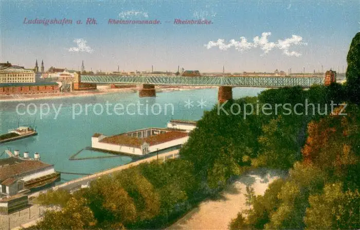 AK / Ansichtskarte Ludwigshafen_Rhein Rheinpromenade Badeanstalt Rheinbruecke Ludwigshafen Rhein