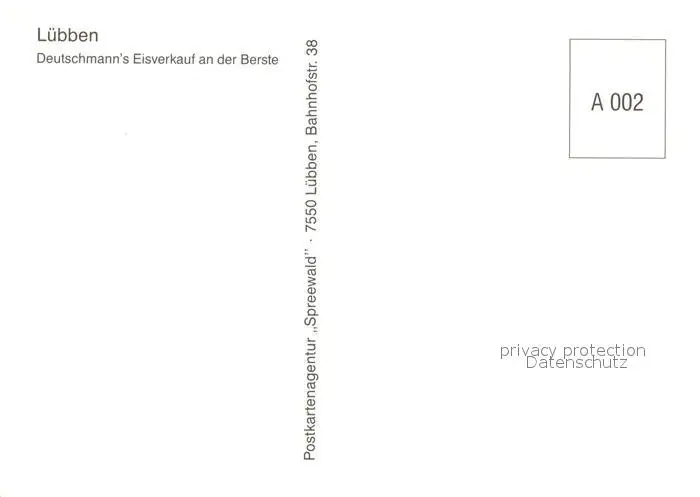 Luebben_Spreewald Deutschmann's Eisverkauf an der Berste Wasserstrasse Luebben Spreewald postalisch nicht gelaufen nach 1965 Erhaltung siehe scans [FriedD77] Frierer