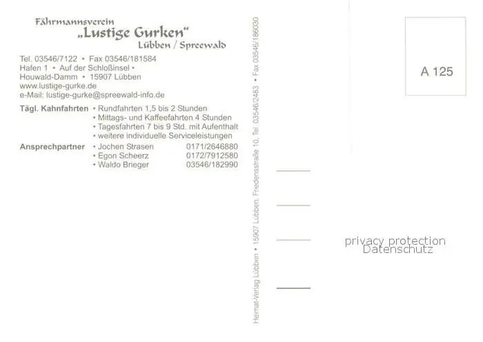 Luebben_Spreewald Faehrmannsverein Lustige Gurken Luebben Spreewald postalisch nicht gelaufen nach 1965 Erhaltung siehe scans [WerneD78] WernPID7
