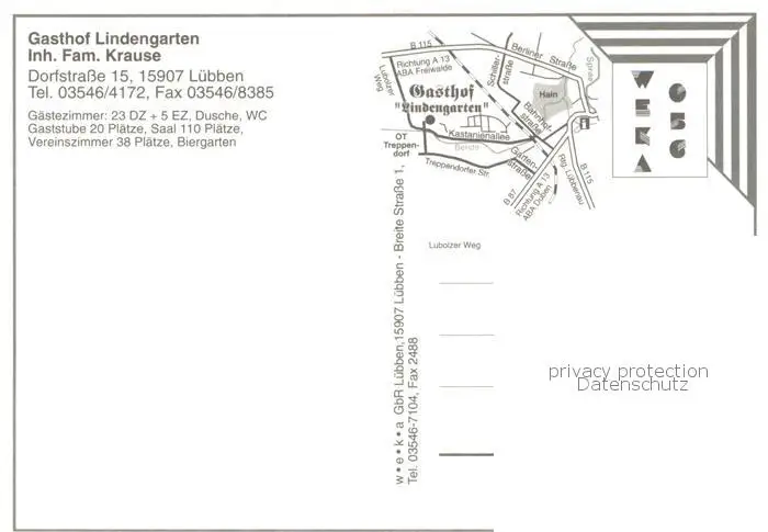 Luebben_Spreewald Gasthof Lindengarten Gaestezimmer Terrasse Luebben Spreewald postalisch nicht gelaufen nach 1965 Erhaltung siehe scans [WerneD78] WernPID7