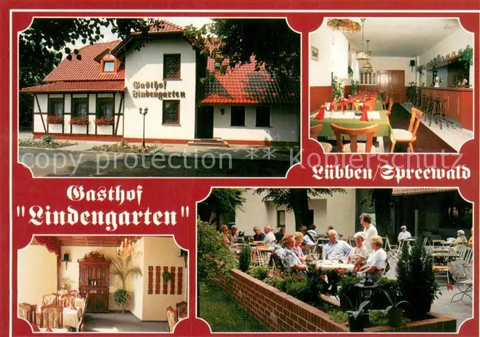 AK / Ansichtskarte Luebben_Spreewald Gasthof Lindengarten Restaurant Terrasse Luebben Spreewald