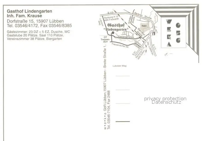 Luebben_Spreewald Gasthof Lindengarten Restaurant Terrasse Luebben Spreewald postalisch nicht gelaufen nach 1965 Erhaltung siehe scans [FriedD77] Frierer