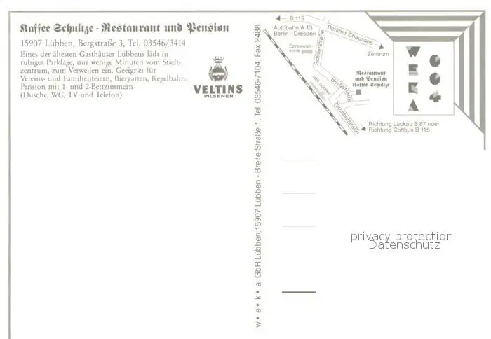 Luebben_Spreewald Kaffee Schultze Restaurant Pension Luebben Spreewald postalisch nicht gelaufen nach 1965 Erhaltung siehe scans [FriedD77] Frierer