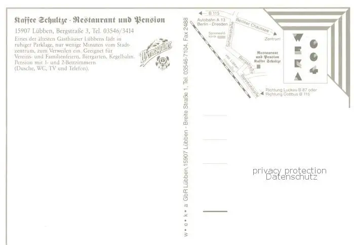 Luebben_Spreewald Kaffee Schultze Teilansichten Luebben Spreewald postalisch nicht gelaufen nach 1965 Erhaltung siehe scans [LiesaD40] LiesID40