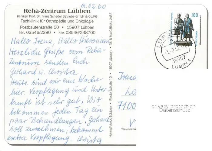 Luebben_Spreewald Reha Zentrum Luebben Spreewaldpartien Luebben Spreewald postalisch gelaufen 2000 Erhaltung siehe scans [WerneD78] WernPID7