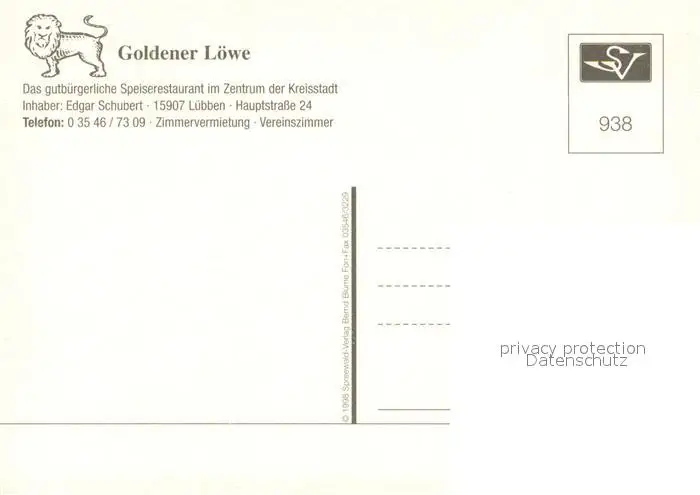 Luebben_Spreewald Restaurant Goldener Loewe Gaststube Zimmer Luebben Spreewald postalisch nicht gelaufen nach 1965 Erhaltung siehe scans [WerneD78] WernPID7