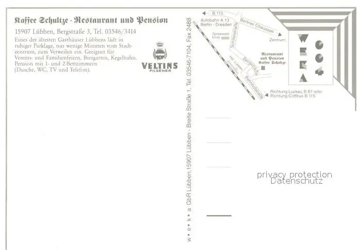 Luebben_Spreewald Restaurant-Kaffee Schultze Luebben Spreewald postalisch nicht gelaufen nach 1965 Erhaltung siehe scans [LiesaD40] LiesID40