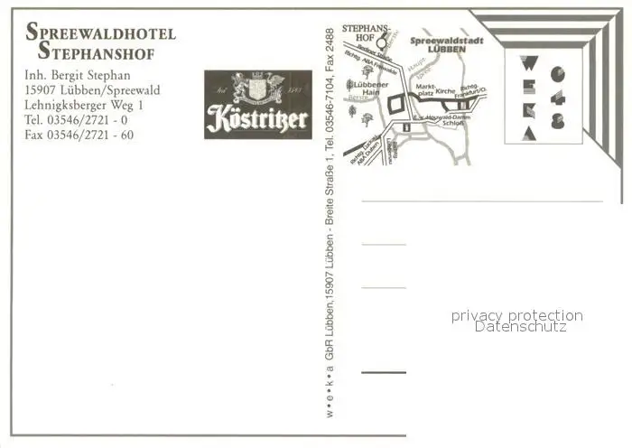 Luebben_Spreewald Spreewaldhotel Stephanshof Restaurant Fremdenzimmer Kahnfahrt Wasserstrasse Luebben Spreewald postalisch nicht gelaufen nach 1965 Erhaltung siehe scans [FriedD77] Frierer