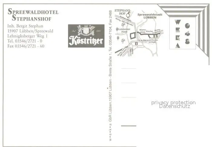 Luebben_Spreewald Spreewaldhotel Stephanshof Restaurant Kahnfahrt Luebben Spreewald postalisch nicht gelaufen nach 1965 Erhaltung siehe scans [FriedD77] Frierer