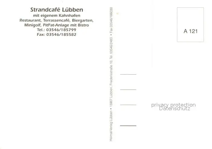 Luebben_Spreewald Strandcafe mit Kahnhafen Kahnfahrten Gastronomie Minigolf Pit Pat Luebben Spreewald postalisch nicht gelaufen nach 1965 Erhaltung siehe scans [WerneD78] WernPID7