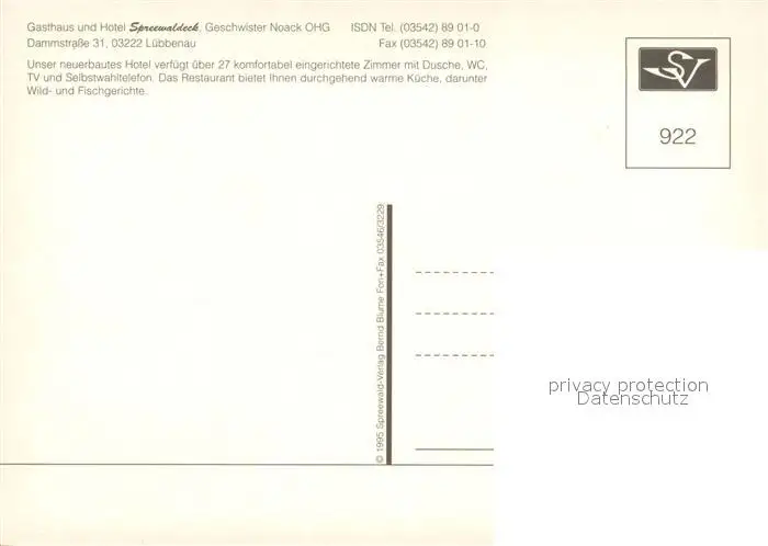 Luebbenau_Spreewald Gasthaus Hotel Spreewaldeck Hausmusik Luebbenau Spreewald postalisch nicht gelaufen nach 1965 Erhaltung siehe scans [FriedD77] Frierer