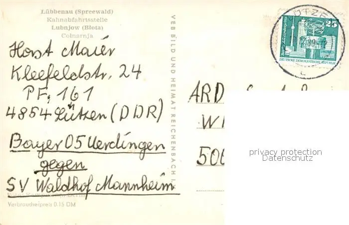 Luebbenau_Spreewald Kahnabfahrtsstelle Luebbenau Spreewald postalisch gelaufen 1989 Erhaltung siehe scans [PaolaD17] PaolPID1
