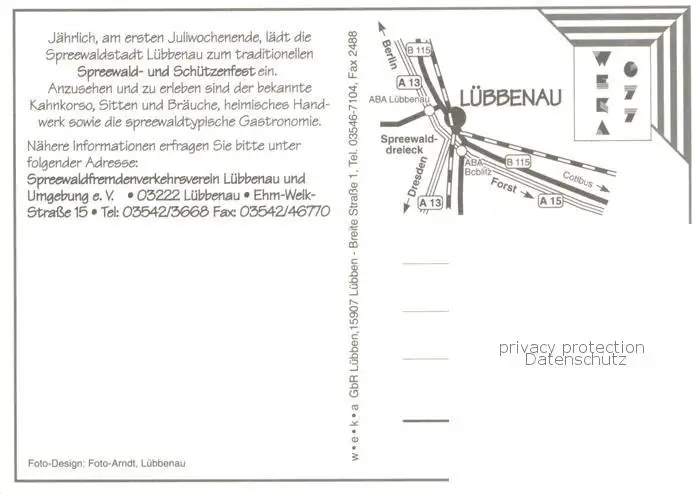 Luebbenau_Spreewald Luebbenauer Spreewald- und Schuetzenfest Luebbenau Spreewald postalisch nicht gelaufen nach 1965 Werbekarte (keine Postkarte) Erhaltung siehe scans [FriedD77] Werbekarte (keine Postkarte) Frierer
