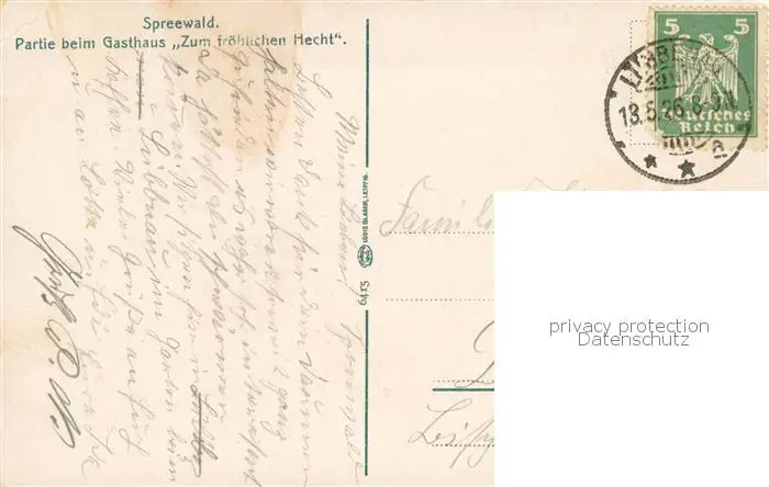 Luebbenau_Spreewald Partie beim Gasthaus Zum froehlichen Hecht Wasserstrasse Kahnfahrt Luebbenau Spreewald postalisch gelaufen 1926 Erhaltung siehe scans [FriedD77] Frierer