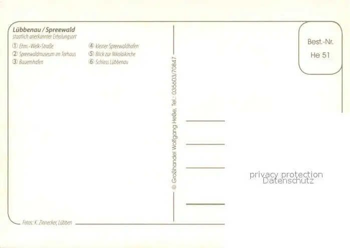 Luebbenau_Spreewald Strassenpartie Zentrum Spreewaldmuseum Torhaus Bauernhafen Nikolaikirche Schloss Luebbenau Spreewald postalisch nicht gelaufen nach 1965 Erhaltung siehe scans [FriedD77] Frierer