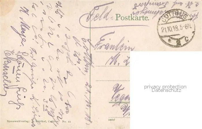 Luebbenau_Spreewald Wotschofskaweg Wasserstrasse Kahn Feldpost Luebbenau Spreewald postalisch gelaufen 1918 Erhaltung siehe scans [FriedD77] Frierer