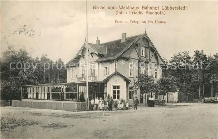 Luebberstedt_Lueneburger Kategorie Alte Ansichtskarten Postkarten bx80662 Luebberstedt_Lueneburger_Heide Waldhaus Bahnhof Luebberstedt_Lueneburger postalisch gelaufen 1909 Erhaltung siehe scans [KathaD81]