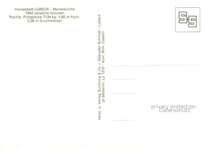 Luebeck 1942 zerstoerte Glocken in der Marienkirche Pulsglocke Luebeck postalisch nicht gelaufen 1921-1965 Erhaltung siehe scans [FriedD77] Frierer