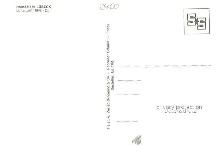 Luebeck Fliegeraufnahme Luftangriff 1942 Dom Luebeck postalisch nicht gelaufen 1942 Erhaltung siehe scans [LiesaD40] LiesID40