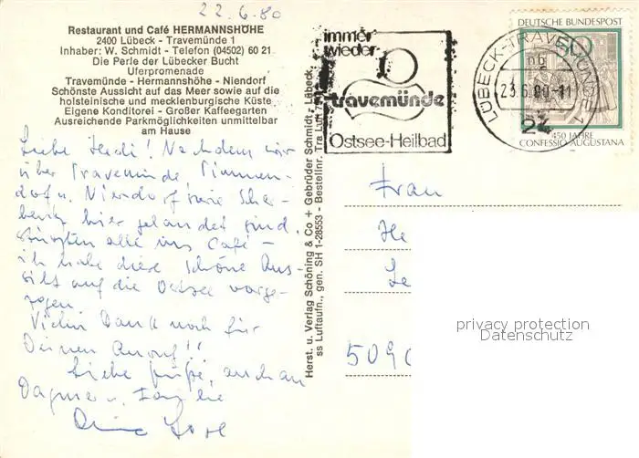 Luebeck Fliegeraufnahme Restaurant Cafe Hermannshoehe Luebeck postalisch gelaufen 1980 Erhaltung siehe scans [KathaD81] Kathoren