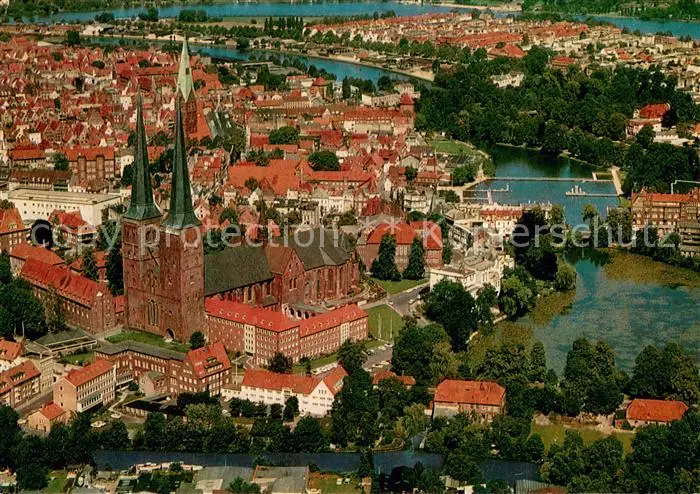 AK / Ansichtskarte Luebeck Fliegeraufnahme mit Kirche Luebeck