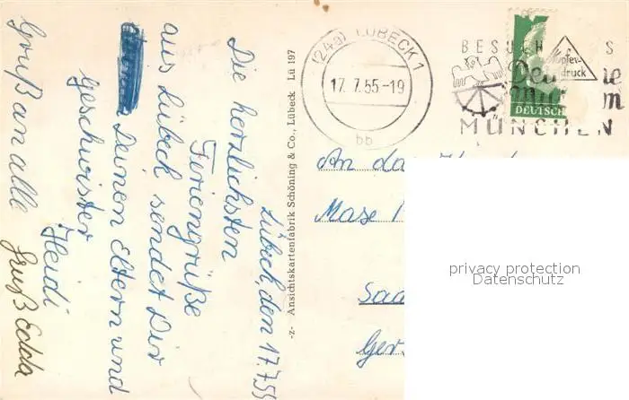 Luebeck Hauptbahnhof Hansestadt Luebeck postalisch gelaufen 1955 Erhaltung siehe scans [FriedD77] Frierer