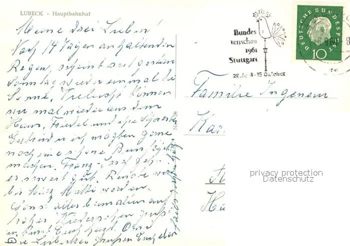 Luebeck Hauptbahnhof Hansestadt Luebeck postalisch gelaufen 1960 Erhaltung siehe scans [FriedD77] Frierer