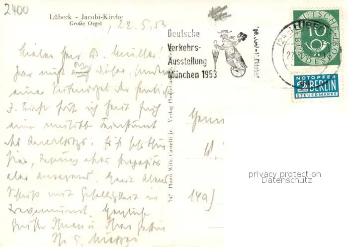 Luebeck Jacobi-Kirche Grosse Orgel Luebeck postalisch gelaufen 1956 Erhaltung siehe scans [LiesaD40] LiesID40