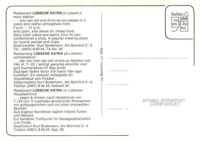 Luebeck Luebsche Katen Kaminzimmer Gastraeume Luebeck postalisch nicht gelaufen nach 1965 Erhaltung siehe scans [WerneD78] WernPID7