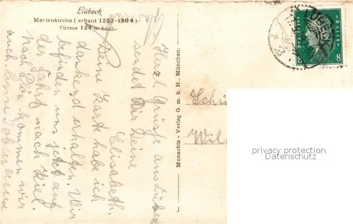 Luebeck Marienkirche Luebeck postalisch gelaufen 1929 Erhaltung siehe scans [FriedD77] Frierer
